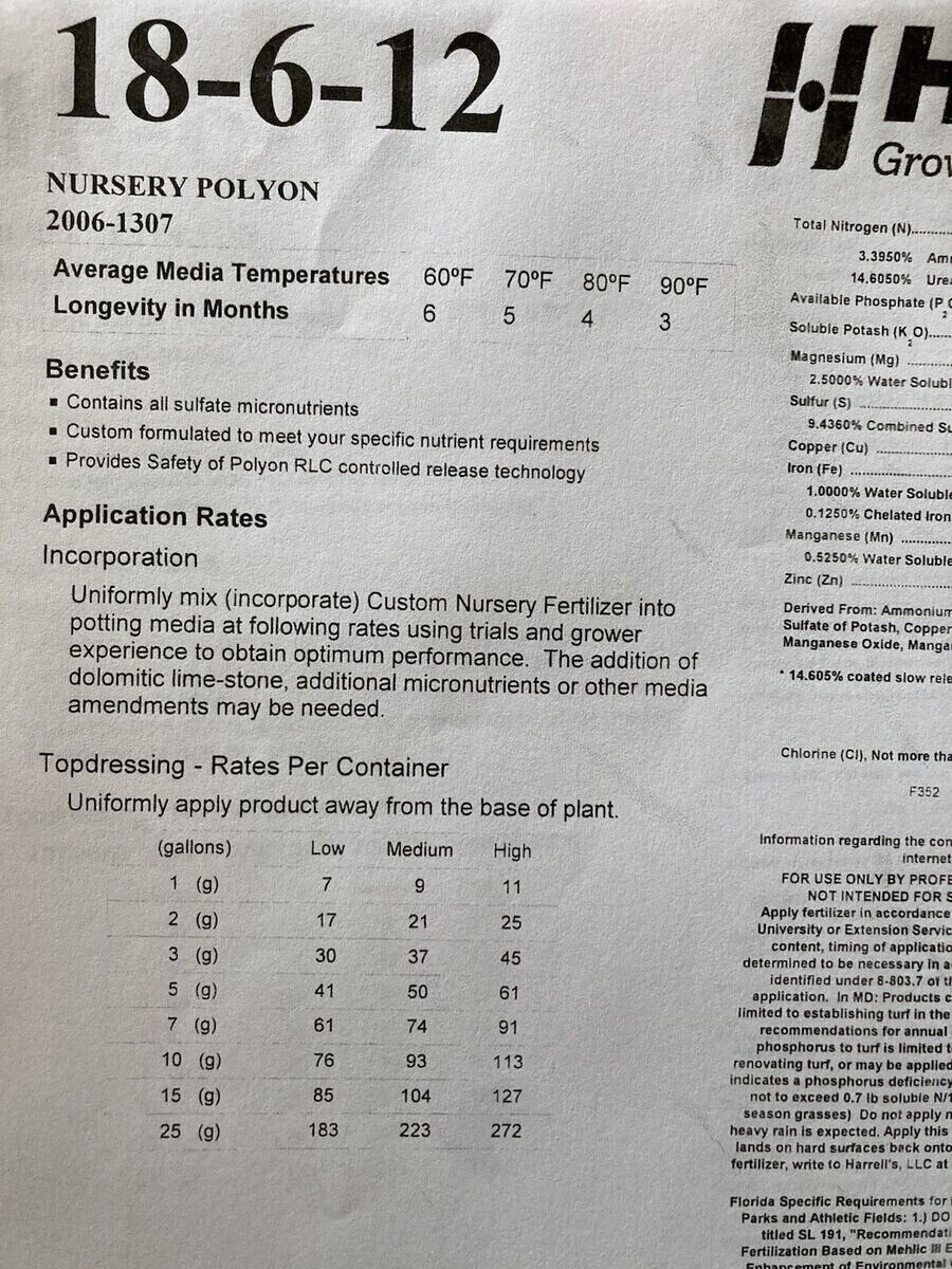 Harrell’s Slow Release Professional FERTILIZER 16-6-12. Works up to 6months