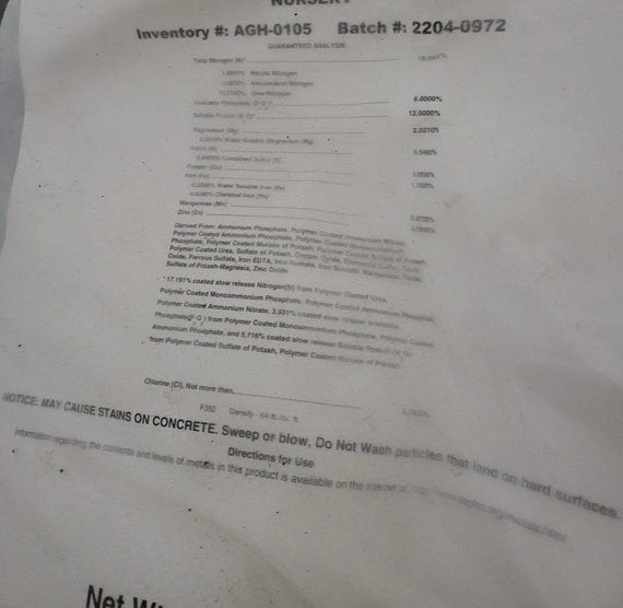 Ingredients: Calcium, Potash, Phosphate, Magnesium, Sulfur, Nitrogen