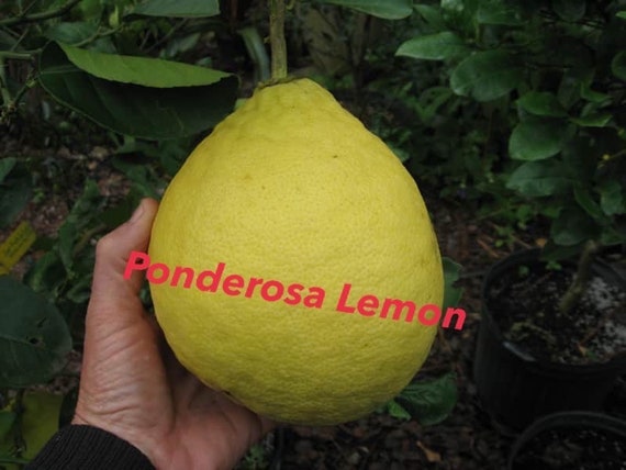 The Ponderosa lemon is an extra-large, moderately juicy lemon variety that is regularly used for culinary purposes. The tree produces large, fragrant blooms that complement the continuous flush of bright green growth.