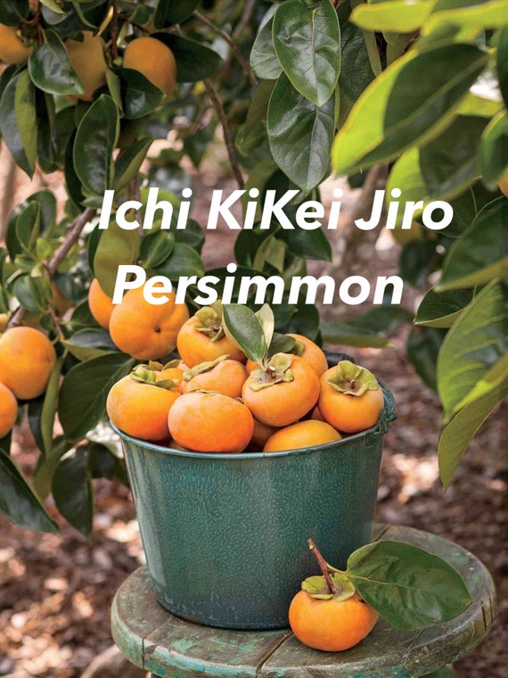 Dwarf ICHI KI KEI JIRO Persimmon. Crunchy/ Soft Sweet Persimmon variety. Grafted Tree ship in Dirted Pot.