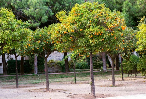 These trees are compact, growing to just 8-12 feet tall outdoors with a 10-foot spread. They can grow even smaller as potted ornamental plants.